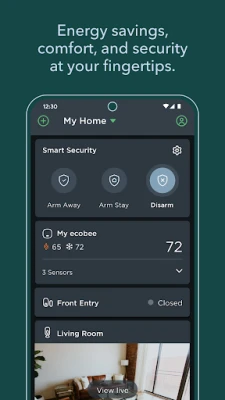 · Control your ecobee smart thermostat, SmartCamera, and SmartSensor. · Set up your new ecobee device with step-by-step installation instructions. · Customize your thermostat schedule to save energy and stay comfortable. · Create smart home automations with Autopilot. · Monitor entryways, windows, drawers, and cabinets with intelligent alerts. · Search for eligible rebates on your energy bill with your utility company.