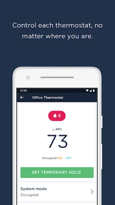 • View all your buildings’ thermostats in one place • Control each thermostat no matter where you are • Stay one step ahead with temperature and HVAC equipment alerts • Modify comfort settings on the go • Easily switch HVAC system modes from anywhere