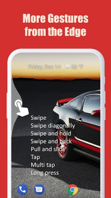 Supports many different gesture types: Tap, Double tap, Long press, Swipe, Swipe diagonally, Swipe and hold, Pull and slide, and Pie controls
