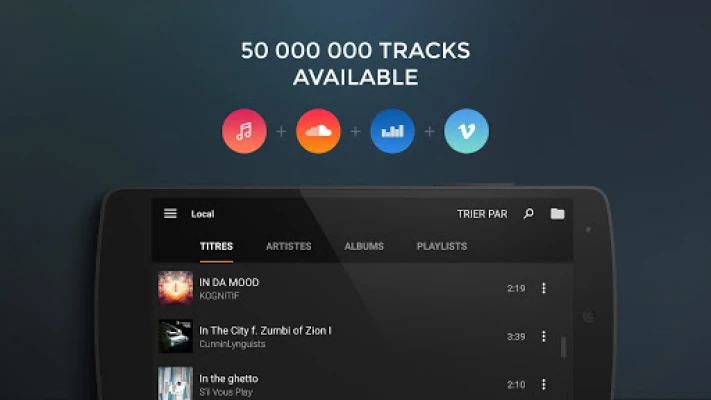 - A global search to browse all your music sources at once (streaming like Deezer, Vimeo or SoundCloud as well as your local mp3)