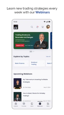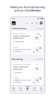 Elearnmarkets is a stock market learning platform with over 3 million users, offering 30+ expert-led courses, 300+ live and recorded webinars, eBooks, book summaries, and financial calculators. The platform helps learners master stock trading, investment strategies, technical analysis, fundamental analysis, options trading, intraday trading, cryptocurrency, forex and wealth management.