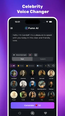 🎧 Funo AI: Voice Changer lets you transform your voice using advanced AI technology. Create unique audio for memes, dubbing, roleplaying, gaming, or social media. Easily change your voice, clone voices, or generate speech in different styles—all in one app.