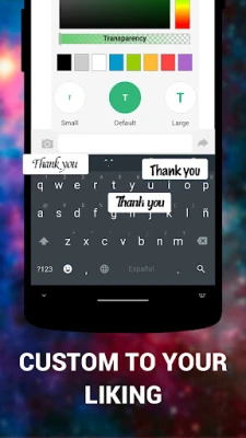 - Customizable keyboard color, font and wallpaper