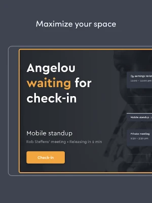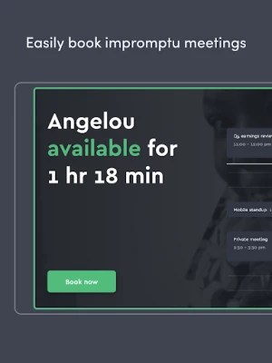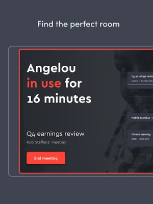 Find an available meeting room instantly with green, yellow, and red indicators at each door. Simply walk up to a room, check out its schedule, book it instantly, and start your meeting.