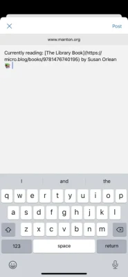 Epilogue is a companion app for Micro.blog. It uses Micro.blog's bookshelves to help you track what books you are reading or want to read. You can blog about a book directly from Epilogue.