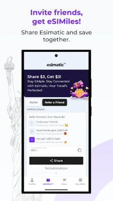 •Invite friends and family - give 3$ and get 3$ eSIM credit.