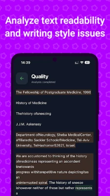• Writing quality analysis for readability and style improvement