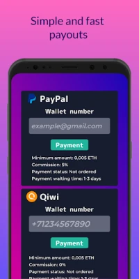 Payouts are available to several wallets in different currencies (depending on the country), choose the method that is convenient for you.