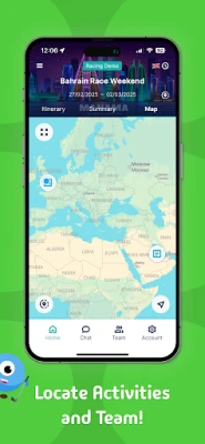 • Our Map feature allows users to visualise their itineraries, this can include: locating your accommodation, directing you to your next activity or even checking where fellow team members are.