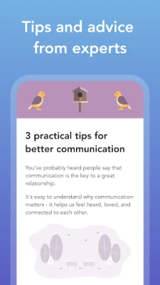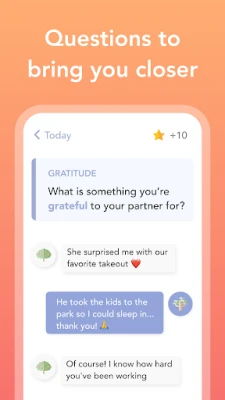 In just a few minutes a day, you can learn new things about your partner, laugh together, get relationship tips from experts, and find new reasons to fall in love again every day. Daily questions help you and your partner celebrate the moments that matter most, while quizzes and check-ins help you understand strengths and areas for improvement in your relationship.