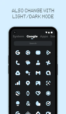 Everything Material You Light/Dark Icons - Shapeless. These shapeless icons adapt to your wallpaper and system accent colors, as well as the light/dark mode of your device. Developed with the minimalist and innovative design philosophy, this icon pack offers a clean, modern aesthetic.