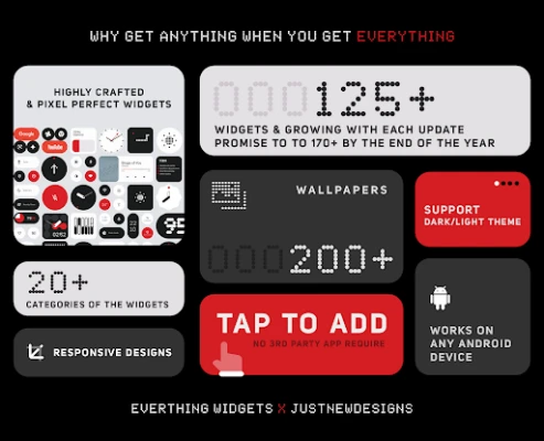 Everything Widget Pack - Transform your home screen with beautifully designed widgets inspired by the Nothing OS aesthetic. Everything Widget Pack works seamlessly on any Android device, offering 110+ stunning widgets to create a truly unique and functional home screen — no extra apps required!