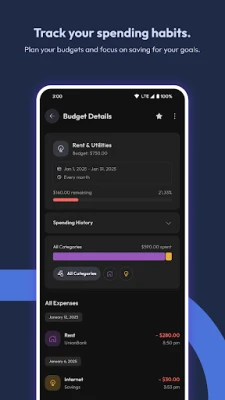 • Create customizable categories that match your unique financial needs.