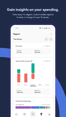 • Visualize and analyze your spending habits and earnings with detailed and flexible financial reports.