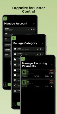 • Customizable Accounts and Categories: Add, edit, delete, reorder, or set monthly limits for categories and accounts.
