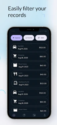 Effortlessly log daily expenses, manage your income, and stay on top of your budget and debts with a clean, user-friendly design.
