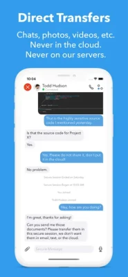 Most chat and file sharing apps give your data to a middle man, known as the cloud. The cloud saves your data. Sometimes insecure. Sometimes indefinitely. The cloud is where most data is compromised and data breaches occur. Why risk your sensitive data?