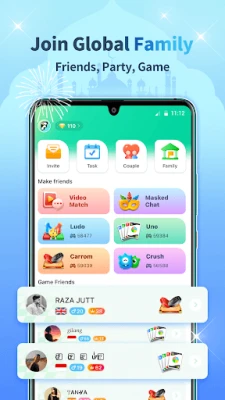 -Several family social games: UNO, LUDO, Carrom, Domino