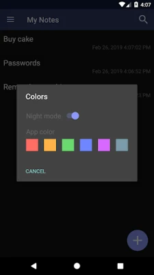 Benefits and Features: * Auto saving notes when closing - never tap 'Save'! * Voice input * Beautiful color themes and night mode * Color selection for notes * Search in all folders