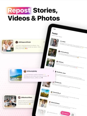 Repost photos & videos easily with Faster! Boost engagement with smart hashtags, trending captions, stylish text, and templates to create standout posts and stories.