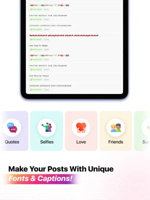 The #1 repost app to easily share photos and videos on your social profiles! Boost your followers and engagement with tailored hashtags, eye-catching captions, and creative tools to make your content shine. Whether you're looking for the perfect caption or a stylish text effect, we’ve got you covered!