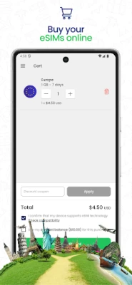 Add the eSIMs you need for your various destinations and securely complete your purchase through the app with your preferred credit card. Enjoy a seamless and reliable shopping experience every time.