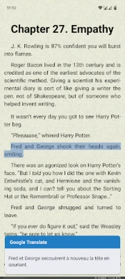 In FBReader Premium, you can translate sentences directly in the app using the integrated Google or DeepL translator.
