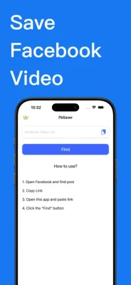 How to use? 1. open Facebook and find video 2. copy link 3. back FbSaver and paste link