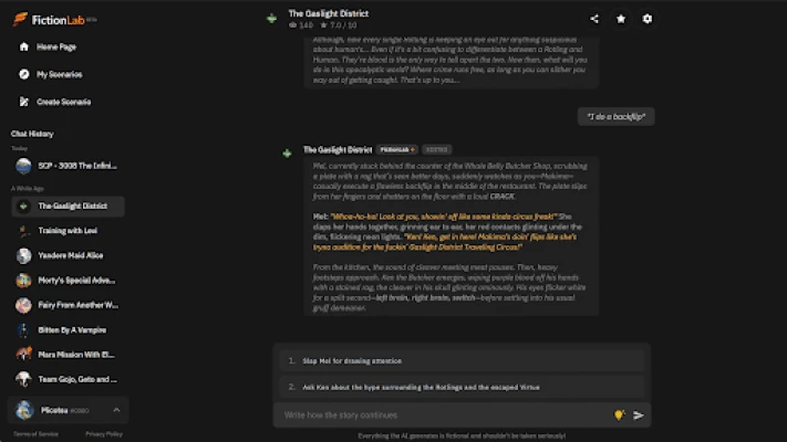 - Create and customize an unlimited number of roleplay scenarios! We won't limit you or put a limit on how much you can create on FictionLab!