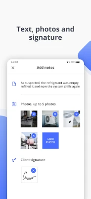 Add notes, photos, payments, and signatures to each job, so you stay organized and paperless.