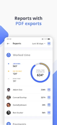 Generate reports to track payments received and hours worked—export data effortlessly for invoicing or analysis.