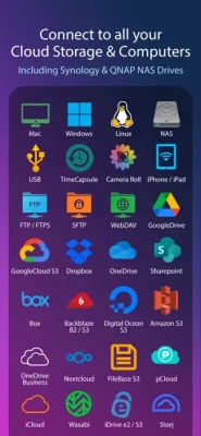 Google Drive, Dropbox, Box, OneDrive, OneDrive for Business, WebDAV, FTP, SFTP,