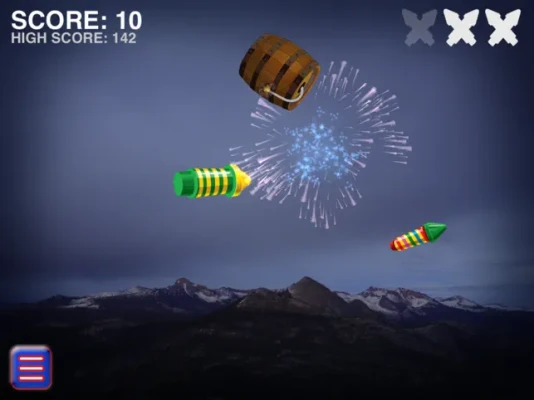 + Leaderboard + Fun and Patriotic + Slash The Flying Fireworks And Watch Them Explode + Star Spangled Banner Soundtrack + Colorful Firework Displays + Majestic Mountains In Yosemite Background + Easy To Play Hard To Master