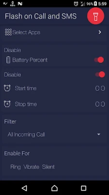 Flash Alert allows you to blink the device's flashlight when you receive phone call or SMS text or app notifications.