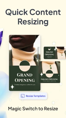 - Auto Resize — One-click resizing for Insta, TikTok, LinkedIn & more