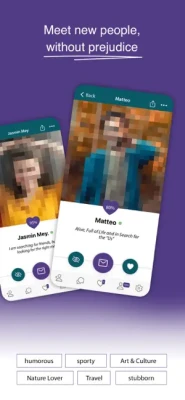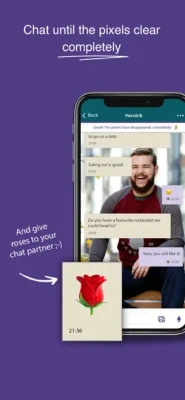 When chatting, your pictures will be pixelated at first, so you can focus on what's on the inside. Just get to know each other casually. The closer you get to know each other, the less your pictures will be obscured by pixels. This way, you'll gradually get to know your chat partner visually as well.