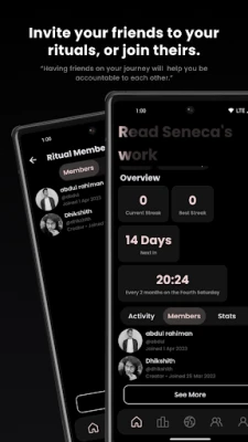 Simple, commit to a new ritual and share photo updates of them with your friends and maintain your streaks