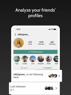 Followmeter is an Instagram followers & unfollowers tracker app. It gives you personalized follower analytics. You can also analyze your friends’ profiles with Reports. Don’t miss the following features: