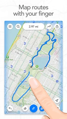 Trace a map with your finger and Footpath will snap to roads and trails. Measure distance and elevation in seconds, then follow along with turn-by-turn voice navigation.
