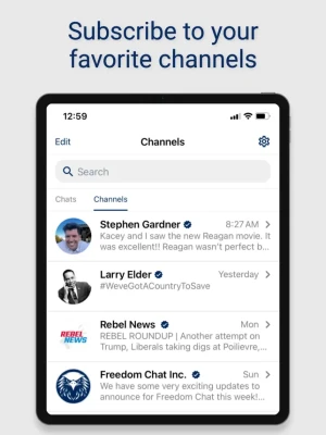 Freedom Chat channels are your personalized, private news feed. Subscribe to your favorite brands and influencers directly within Freedom Chat to stay updated on everything you care about. Your subscriptions and reactions are completely private—no one can see the channels you follow or your interactions with posts.