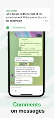 You can create social spaces in Frisbee and organize colleagues into groups based on tasks and interests. There you can exchange messages, calls, media files and links, as well as documents of any format.