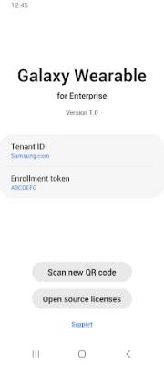 1. Sign up for Knox Suite on SamsungKnox.com. 2. Create a Knox Manage account. 3. Generate an enrollment token and QR code. 4. Scan the QR code with this app to enroll your Samsung watches.