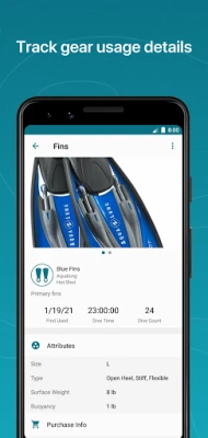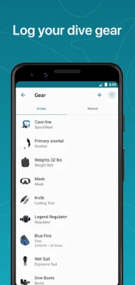 • Log your dive gear and track gear usage details.