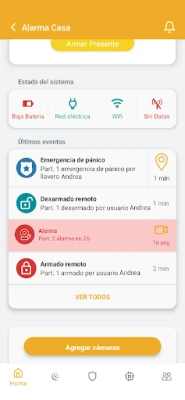 • Últimos 4 eventos con información de video verificación en caso de alarma y minutos transcurridos desde la generación del suceso.