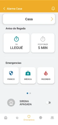 La aplicación permite disparar tres tipos de emergencias con sonidos diferenciados (Policial, incendio y emergencia médica), al activar una emergencia el sistema reportará a todos los medios habilitados, incluyendo monitoreo.