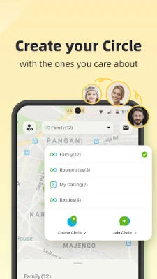-Join existing Circles and share location with circle members.