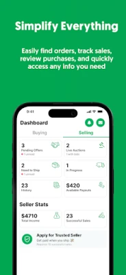 • Earn Trusted Seller status after 10 sales to get paid out faster, a badge, & discounts