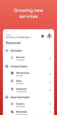 The app helps you manage your services running on Google Cloud directly from your Android phone or tablet: