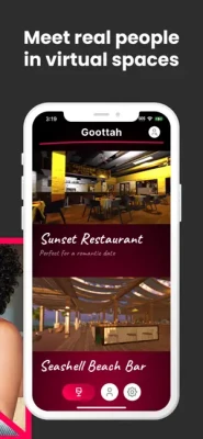 Goottah is a virtual realm where you can date, meet new people, and have fun! Select your connection preferences and start joining pleasant locations. Visit the Seashell Beach Bar, Sunset Restaurant, or Sunny Meadow Bistro and have interesting conversations with others. No subscription is required to video call and connect with others. Goottah is inclusive of all types of people looking for relationships. Dating, friendships, and good times are awaiting you!