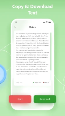 Our AI grammar checker app quickly scans your text and highlights all grammar, spelling, and punctuation mistakes in it. Simply correct the mistakes and download the results in PDF format for future use.